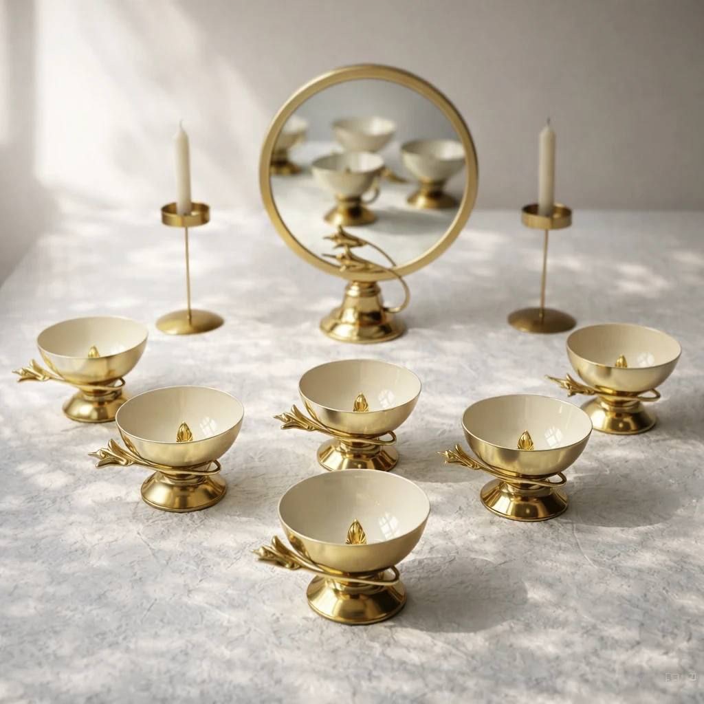 ✅ست کامل هفت سین شامل : ۶ پیاله ، آیینه ، ۲شمعدان