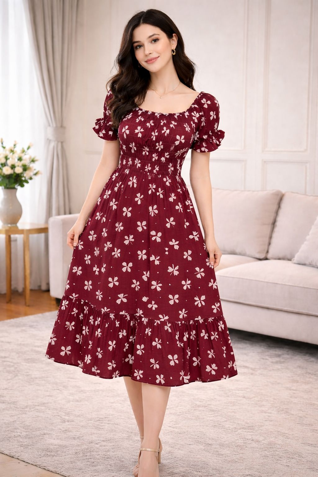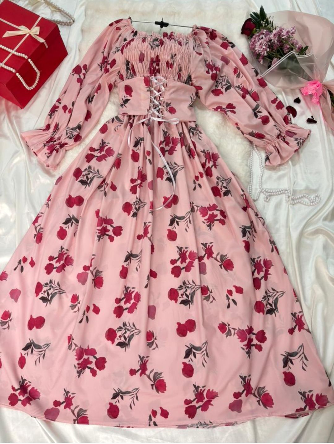 پیراهن ساحلی گلدار مدل پرنسسی