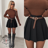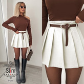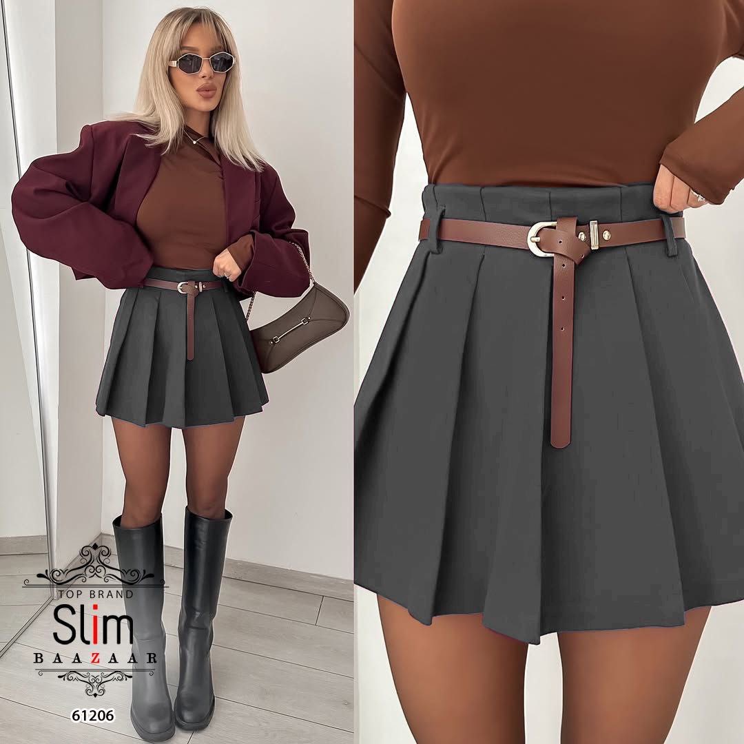 دامن پلیسه کوتاه به همراه کمربند